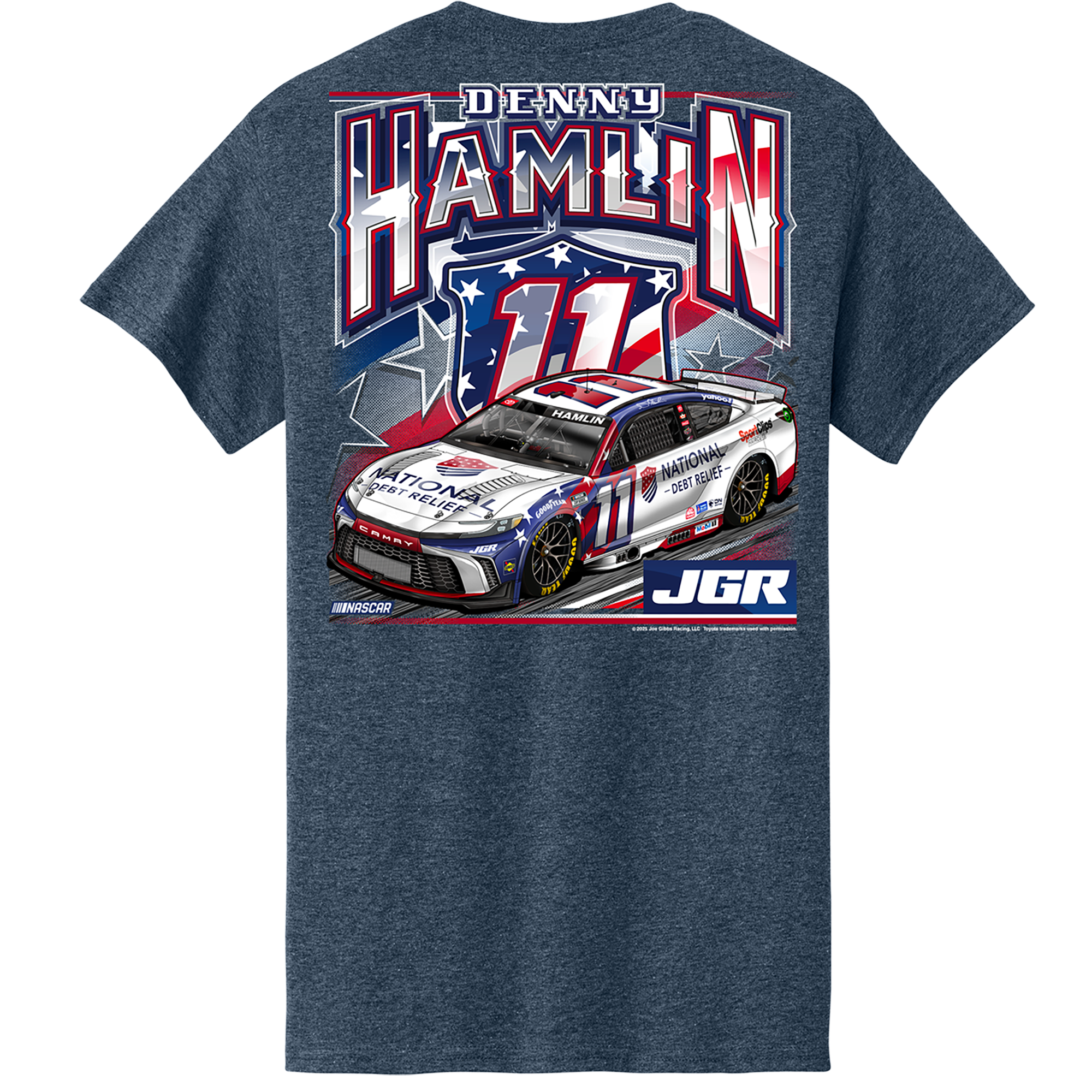 Cheer on Denny Hamlin and his new sponsor, National Debt Relief with this car tee!